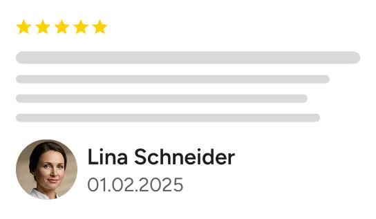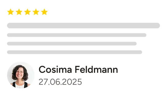 Ich erhalte hervorragende Bewertungen auf Plattformen wie Jameda und Google. Die positiven Erfahrungsberichte vieler zufriedener Patienten unterstreichen meine Kompetenz und die hohe Qualität meiner Arbeit.